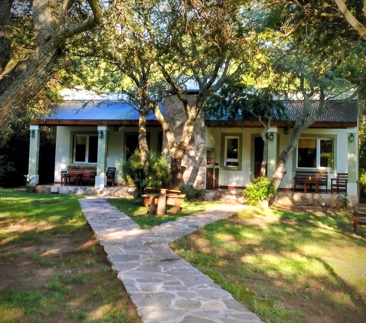 Este par de hermosas cabañas, ubicadas en Potrero de los Funes están inmersas en medio de un bosque de caldén y le ofrecen una estadía inolvidable a los que gustan despertar en un entorno natural y familiar, donde el canto de los pájaros es el único despertador, disfrutar de su amplio parquisado, mucha sombra natural, y desde donde se puede contemplar las hermosas cierras la India dormida. Visitar el bello salto de la moneda, así como caminar hasta la costa del lago y tomar unos ricos mates.