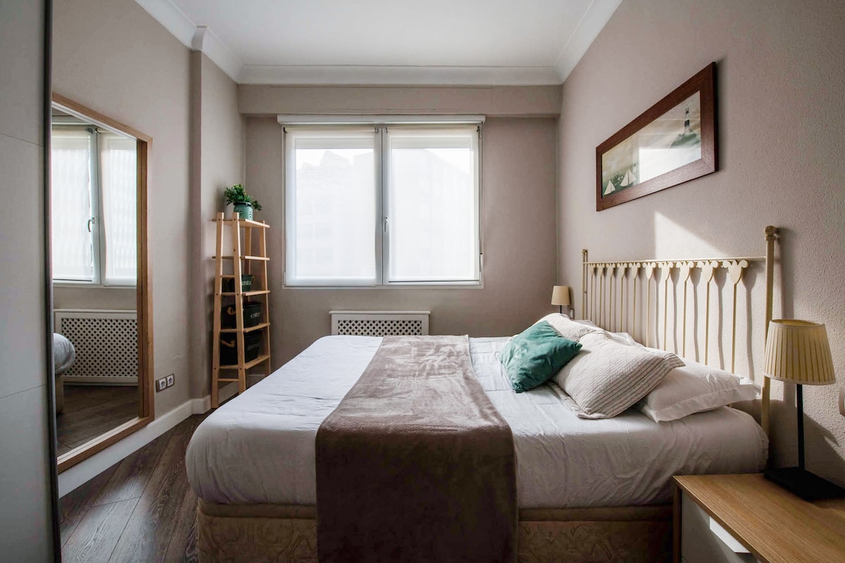 To mieszkanie jest częścią historii Bilbao. Zbudowany w 1920 roku, jest klasyczny, z wysokimi sufitami i kominkiem. Z okien roztacza się piękny widok na góry, rzekę i Stary gmach opery, a przy typowym miradorze można napić się kawy. Został w pełni odnowiony w 2024 roku. Idealne dla rodzin i dzieci z w pełni wyposażoną kuchnią. Aby zapewnić sobie spokój ducha, możesz zaparkować pojazd w bezpłatnym garażu położonym w odległości zaledwie 200 metrów.