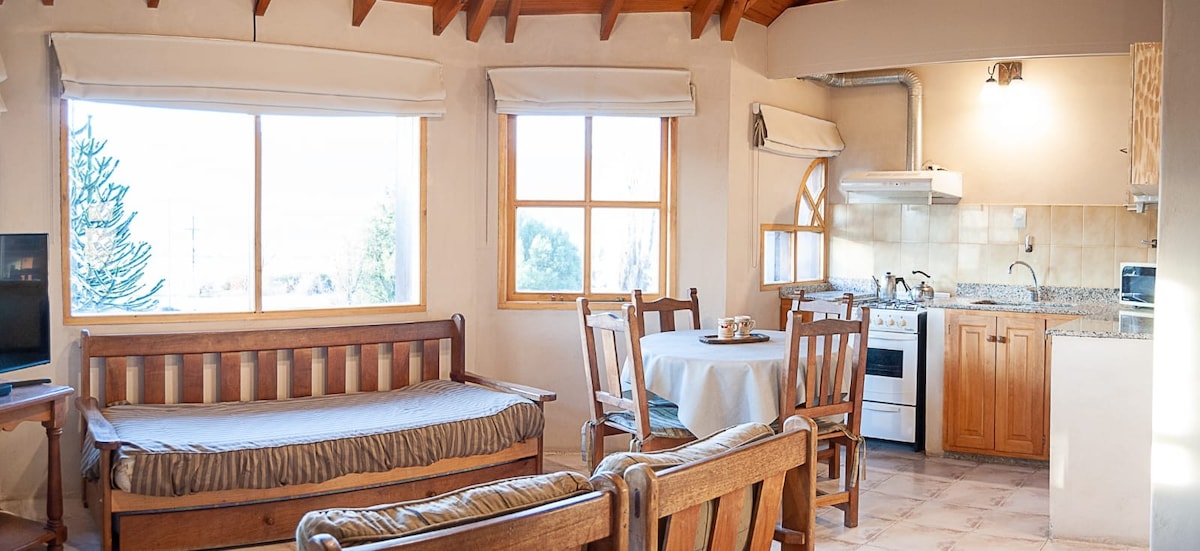 Nowoczesny apartament typu studio w centrum San Martin de los Andes. W pełni wyposażony w sprzęt kuchenny, ręczniki, pościel i wszystko, czego potrzebujesz, aby cieszyć się pobytem. Apartament znajduje się 2 przecznice od dzielnicy handlowej, co pozwala na całkowity spokój, ale jednocześnie łatwy i szybki dostęp do restauracji, sklepów i supermarketów. Ewentualnie w mieszkaniu można umieścić trzecie łóżko w górnej części dla dziecka, co jest oceniane indywidualnie.