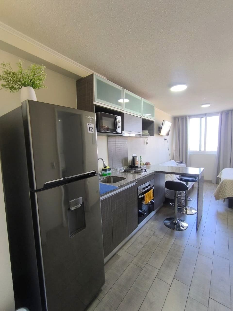 🏡 Departamento de 1 a 3 personas 📅 Estadías cortas o largas ❄️Aire acondicionado y calefacción tipo split 👩🍳 Cocina full equipada, 100% eléctrica 🚿 Baño en suite con agua caliente y tina 🧺 Incluye lavadora-secadora en el departamento 💻 Internet de fibra óptica, para ocio y trabajo 🔑 Acceso autónomo, sin contacto presencial 🕒 Conserjería 24 horas 🚇 A 12 min caminando del metro Departamental y Ciudad del Niño 🛒 A pasos de San Miguel, supermercados, farmacias y hospitales