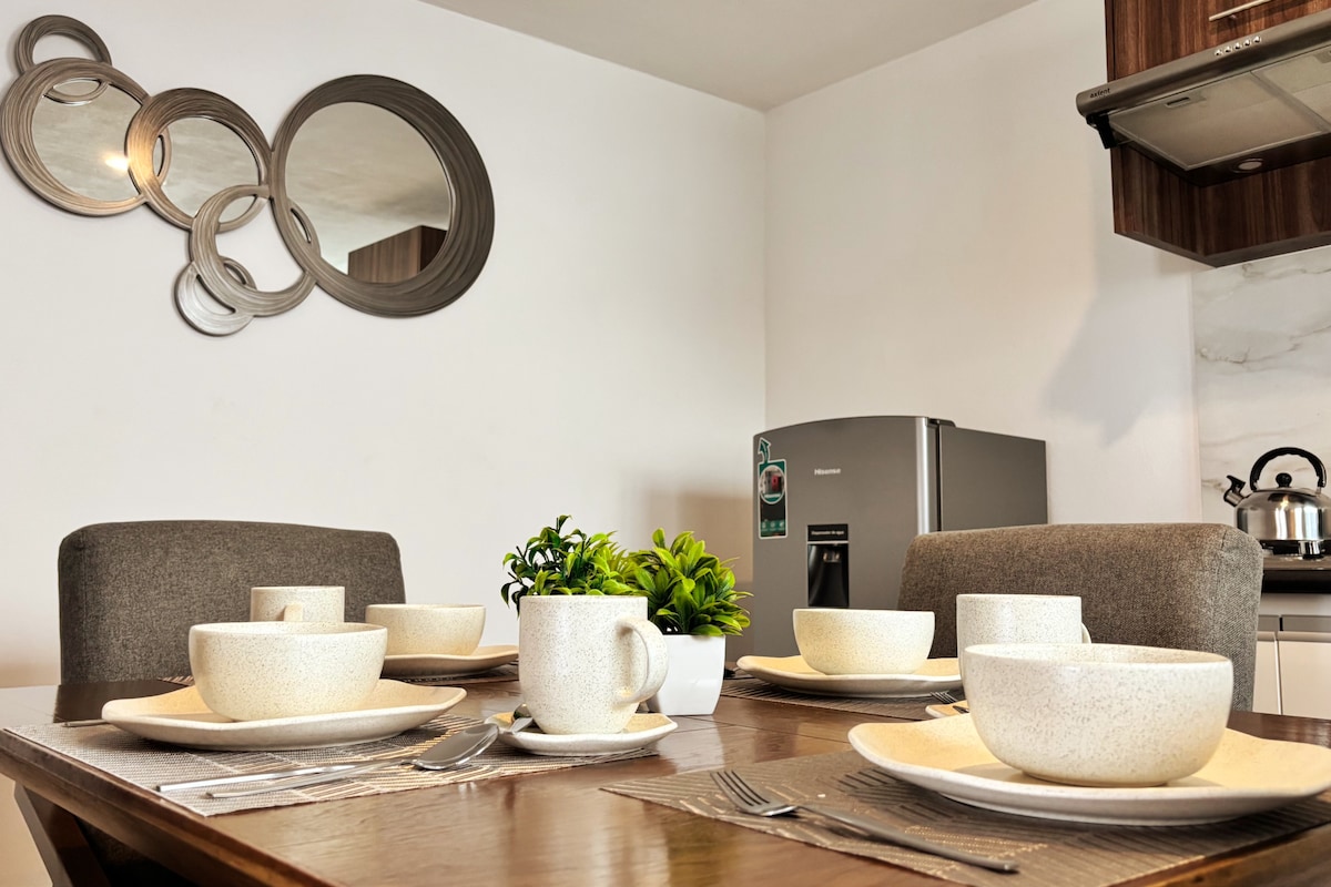 Apartament Bonito 5 minut od centrum Metepec, wyposażony we wszystko, co niezbędne do komfortowego pobytu pełnego komfortu, wyjątkowy do dzielenia się ze znajomymi lub rodziną. Apartament posiada system bezpieczeństwa z zamkniętym obiegiem i kamerami bezpieczeństwa na zewnątrz, parking, dostęp z bramą elektryczną i świetną lokalizację w Metepec z łatwym wyjazdem na drogę Toluca-Tenango i Av Codagem, a także dostęp do placów handlowych.