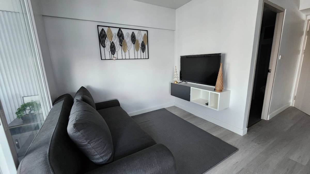 Poczuj nowoczesny urok tego ładnie urządzonego pokoju. W pełni umeblowany, ze wszystkimi urządzeniami elektrycznymi, które zwiększają komfort pobytu! Całe miejsce będzie Twoje [sypialnia, łazienka, kuchnia i salon] Miękki i wygodny materac typu king size i komplet pościeli Muji. Darmowe Wi-Fi, 60-calowy telewizor SmartTV + darmowy Netflix, oczyszczacz powietrza, pralka z funkcją suszenia, żelazko, kuchenka mikrofalowa, lodówka, kuchenka elektryczna i przybory kuchenne. Łazienka z prysznicem z deszczownicą i podgrzewaczem wody.