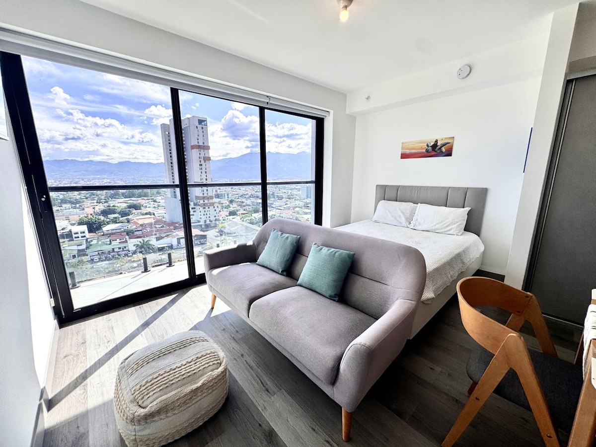 This is the life style that you deserve! Rated in Top 5% by Guests! Designed for long stays, remote working, medical tourism, one day tours base and digital Nomads. Comfy, Luxurious, Eco-Friendly, Fully equipped apartment in 14th floor in the Cosmopolitan Tower, the newest building in the best location of San José . Its located near the airports, Hospitals, Embassies, jogging parks, synagogue, restaurants and fast food, convenience stores, malls. Enjoy night city lights views everyday!