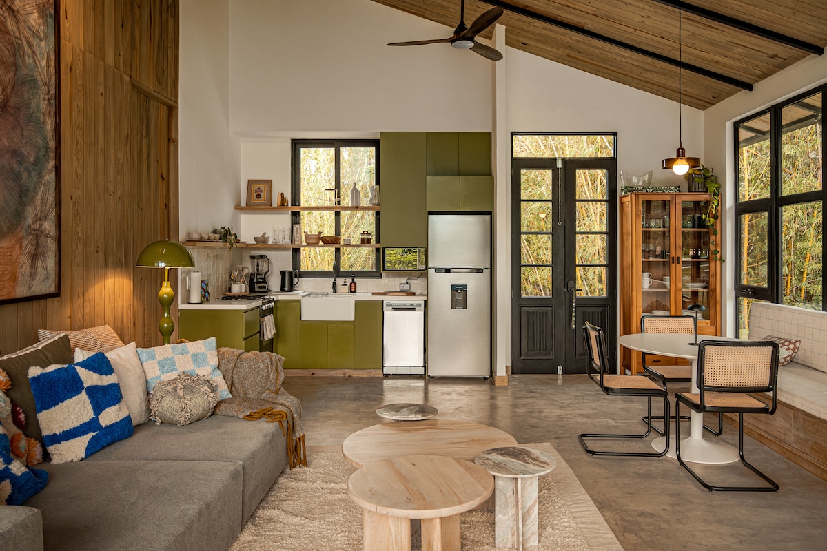 Cozy compact-size cabin (tiny cabin style), designed for an intimate and functional experience for two people. Ideal for couples who value nature, silence, forest surroundings, and nights by the fireplace—rather than large spaces or hotel-style services. Just 20 minutes from Antigua and 5 minutes from local restaurants, with access to hiking and cycling trails. Perfect for relaxing as a couple, traveling solo, or working remotely in a peaceful setting. ·Disconnect to reconnect·