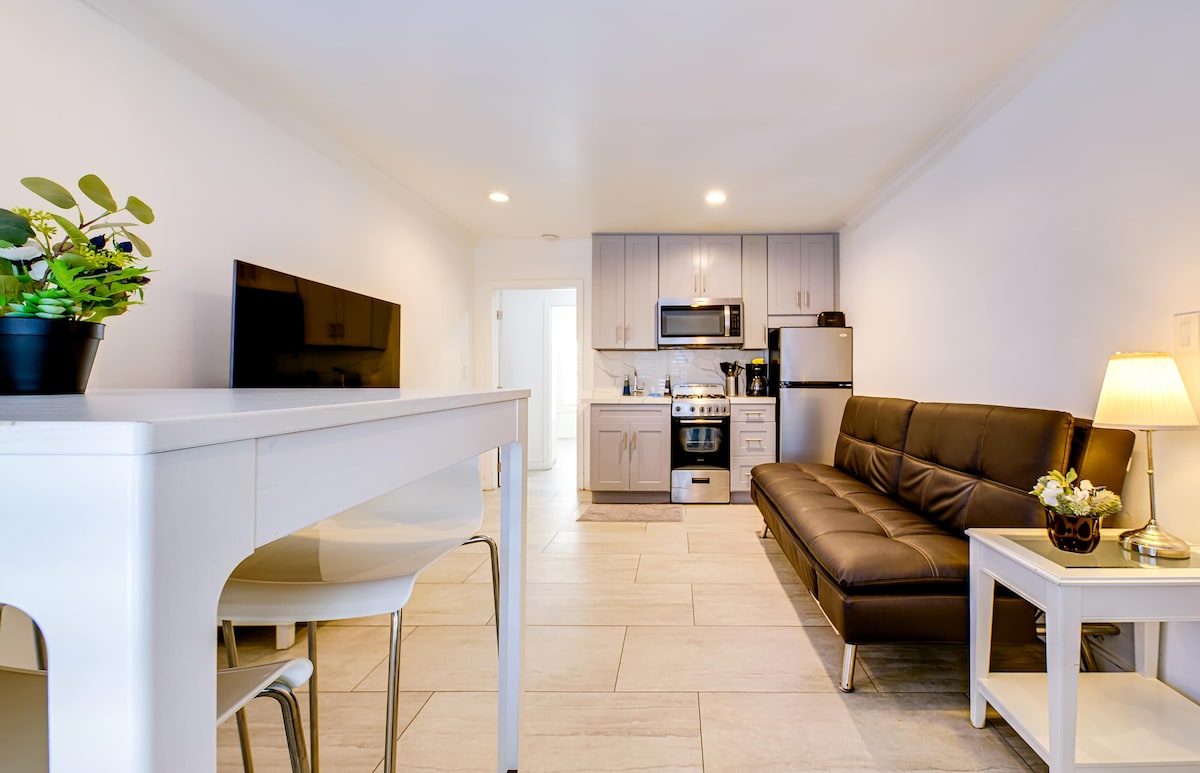 Czyste mieszkanie z 1 sypialnią i 1 łazienką w pobliżu Irvine (południowy hrabstwo Orange) ze wszystkimi podstawowymi udogodnieniami. Zaledwie 5 minut od lotniska SNA, 20 minut do Disneylandu, 15–20 minut do Newport i Laguna Beach, 45 minut do LAX. Wygodnie mieszczą się 2 osoby (3 z kanapą) i obejmują bezpłatny parking garażowy i pralnię na miejscu. Dostęp do 3 basenów/jacuzzi, całodobowej siłowni, grilla, salonu do pracy i pokoju gier. Szybkie Wi-Fi, streaming (Netflix, Amazon, HBO itp.), konsolę Xbox i relaksujący balkon. Idealne na pracę lub wakacje!