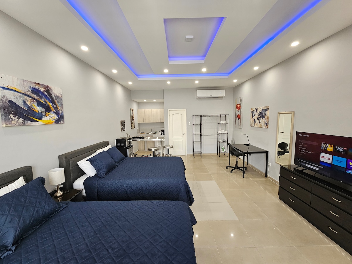 Designed for those seeking comfort and privacy during their stay in San Pedro Sula. It features high-speed Wi-Fi, a comfortable workspace, and private parking, making it the ideal choice for remote work, business trips, and short or long stays. Its strategic location provides quick access to shopping areas, restaurants, and the city's main thoroughfares. A space designed for those who value modernity, quality, and a stress-free experience