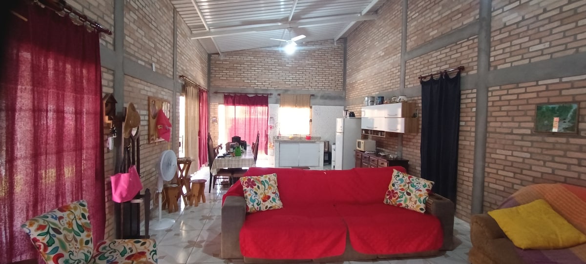 Kompletny dom wypoczynkowy, idealny na odpoczynek z rodziną lub przyjaciółmi. Położony w dzielnicy Terrazul, w spokojnej dzielnicy mieszkalnej i blisko lokalnych sklepów. Przestronne, komfortowe i przygotowane na pobyt maksymalnie 5 osób. Przynieś tylko swoje rzeczy osobiste i ciesz się spokojnym pobytem. Uwaga: napięcie 110 V i 220 V, z oznaczeniami gniazd.