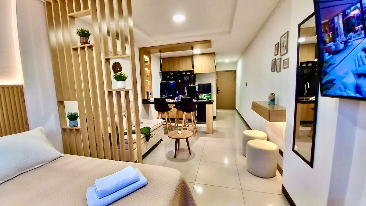 Uwielbiamy podróżować, dlatego zaprojektowaliśmy ten depa, myśląc o doświadczeniu, które chcielibyśmy mieć: miękkie, czyste i super wygodne łóżka, wyposażona kuchnia, przestronne przestrzenie i niesamowity widok do relaksu lub pracy. Znajduje się w dużym, bezpiecznym i rodzinnym kondominium, z przestrzeniami socjalnymi, z których można korzystać jako grupa. Super czyste, z pościelą i ręcznikami, dzięki którym poczujesz się jak w domu od momentu przyjazdu.