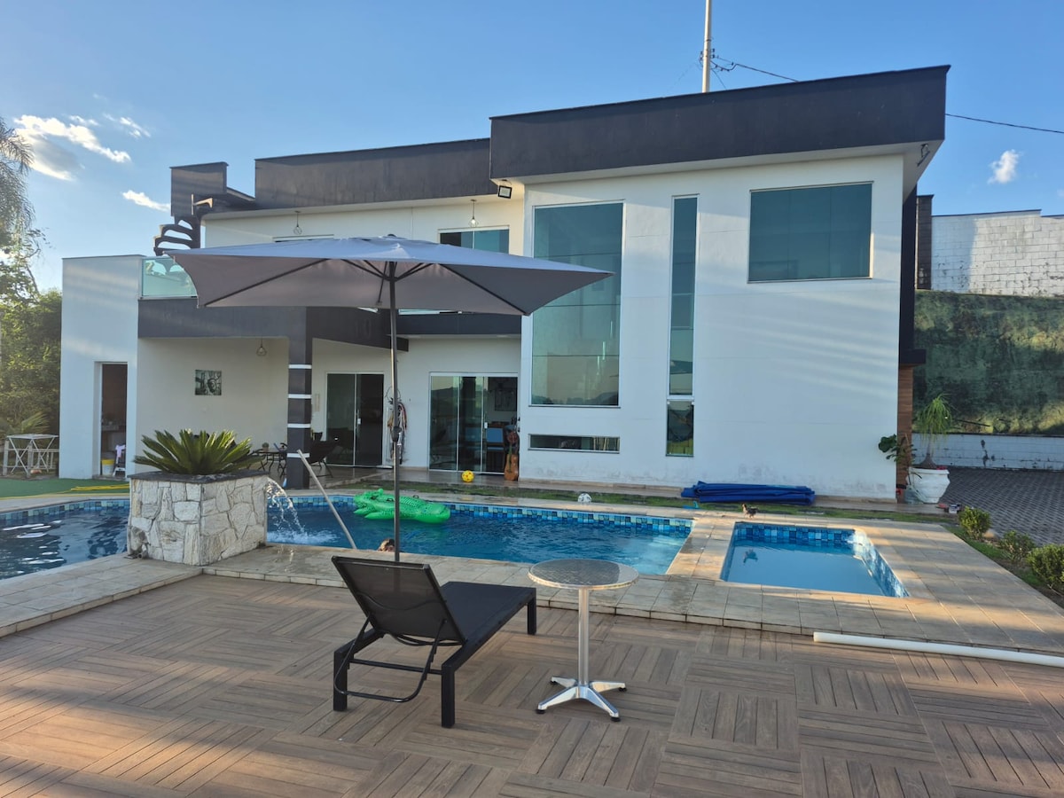 Wyobraź sobie, że odpoczywasz, podziwiając niesamowity widok na góry Igaratá. Nasz dom to idealny sposób na ucieczkę od codzienności. Skorzystaj z prywatnego basenu i podgrzewanego jacuzzi pod gwiazdami. Wieczorem atmosfera jest jeszcze bardziej wyjątkowa dzięki kominkowi lub w części dla smakoszy z grillem i piekarnikiem do pizzy. Idealne dla rodzin i przyjaciół, z szerokim i bezpiecznym trawnikiem dla dzieci i zwierząt. Gwarantowana łączność z szybkim Wi-Fi. Przyjdź i stwórz niezapomniane wspomnienia!