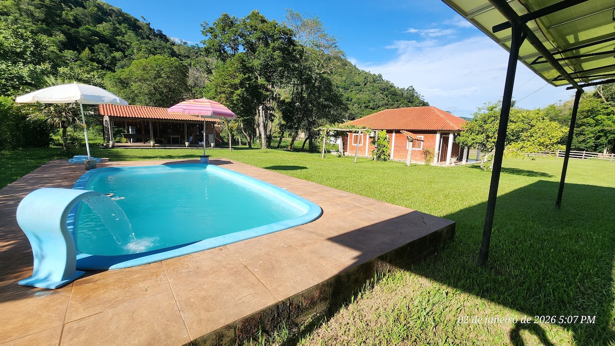 Casa de campo: piscina, churrasqueira e 5 quartos