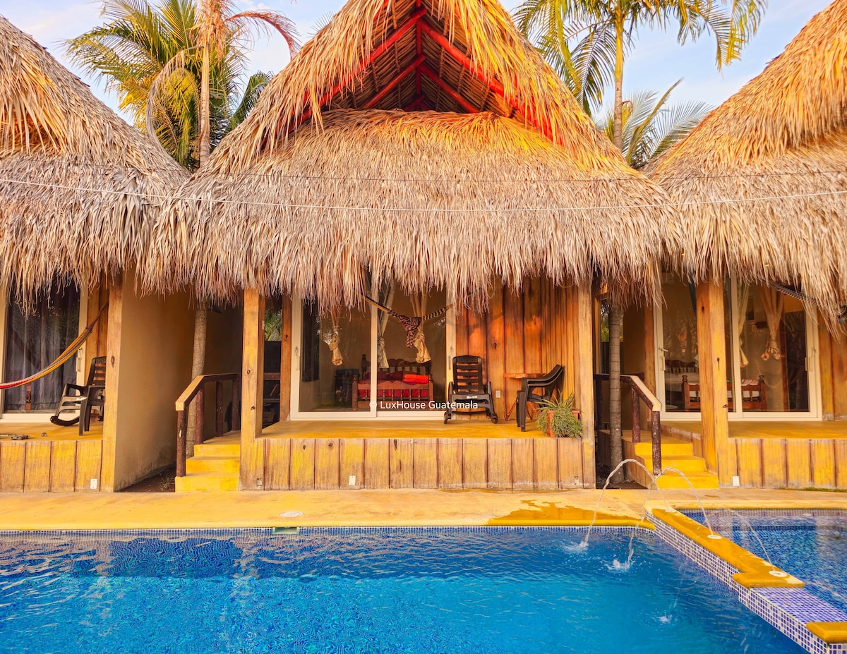 Una cabaña acogedora, ideal para disfrutar con tus seres queridos, te ofrece comodidad, te regala su paz y sus grandes ventanales te deleitarán con los hermosos celajes de la Costa Sur, apreciarás la luna, las estrellas y avecitas curiosas que se acercan a saludar. Tendrás acceso a un club privado con seguridad 24/7. Muy cerquita de varias actividades para relajarte y convivir con la naturaleza. ¡Yo te doy una guía que te sorprenderá! ✨