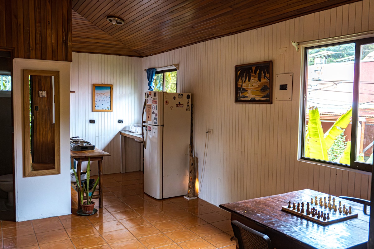 Villa Sereno is a beautiful cozy casita nestled in the heart of Santa Teresa North which offers a fully equipped kitchen, a spacious bedroom with king size bed and a shady ample terrace with dining table and lounge sofà. The place has a very comfortable and friendly atmosphere offering a unique experience to our guests. Settled in a lush tropical garden the villa is also only steps away from the beach access and services like markets, restaurants, cafes, shops, yoga/pilates studios, ATM, etc.