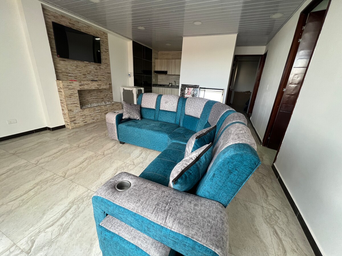 Ta fantastyczna przestrzeń jest umeblowana i odpowiednia dla 10 osób, ma 3 sypialnie, kuchnię, jadalnię, balkon i zadaszony parking, wyłącznie dla apartamentu. W tym pięknym apartamencie będziesz cieszyć się uprzywilejowanym widokiem na góry, miasto Paipa i częściowo jezioro Sochagota, a także wygodne przestrzenie dla Ciebie i Twojej rodziny, aby odpocząć i spędzić najlepsze dni w otoczeniu natury i odetchnąć świeżym powietrzem.