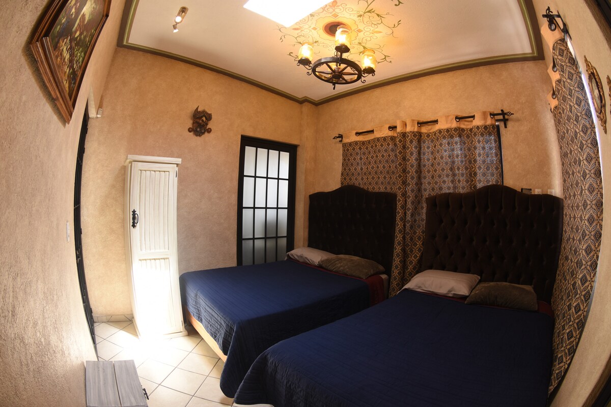 Ciesz się spokojem Querétaro, jesteśmy dwie przecznice od zabytkowego centrum (10 minut spacerem). Przestronny, wygodny i przytulny pokój dla rodziny lub małej grupy z łóżkiem typu QueenSize, podwójnym łóżkiem, prywatną łazienką w pokoju, 46-calowym telewizorem (cale), sofą dla piątego członka grupy lub do cieszenia się seriami lub peiicula (mamy platformy z Netflix, Amazon, Hbo i systemem Total Play do oglądania wydarzeń sportowych). Biurko do pracy