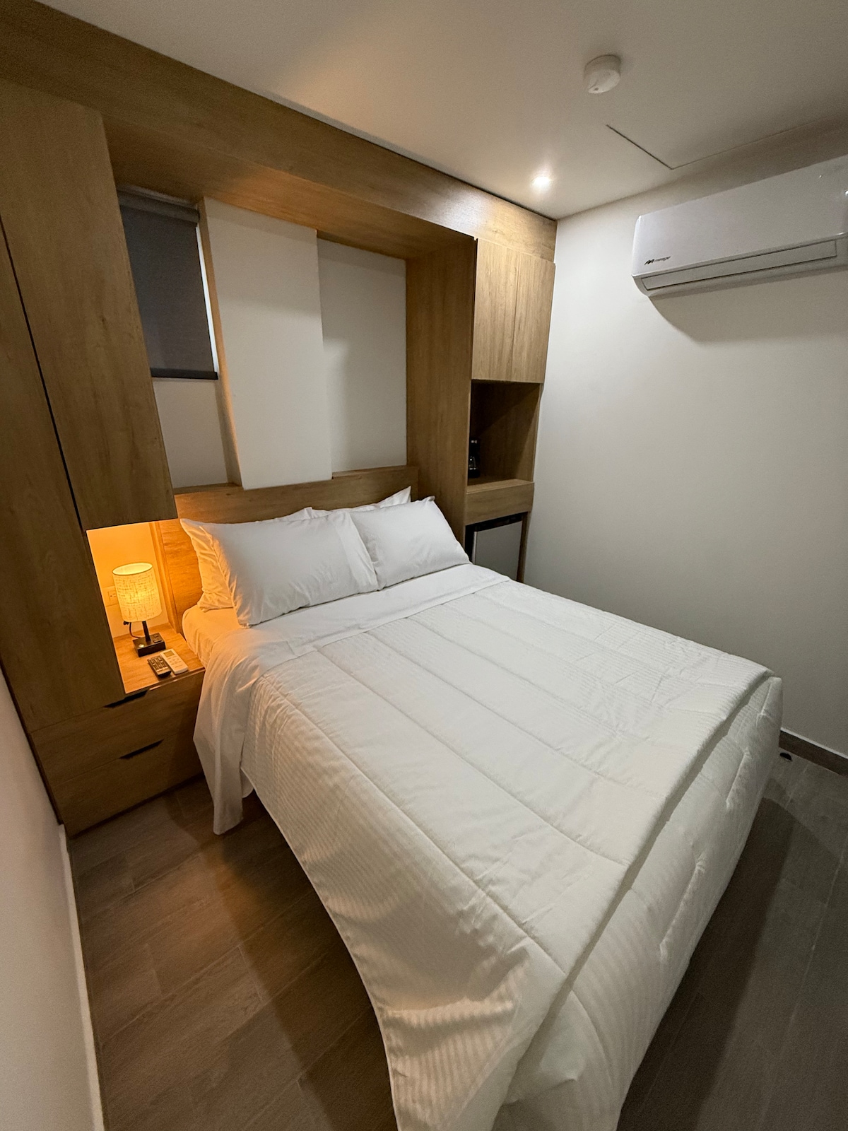 Zrelaksuj się w pokoju zaprojektowanym z myślą o komforcie i stylu. Wyposażony w łóżko typu king size zapewniające spokojny sen, biurko idealne do pracy lub czytania oraz łazienkę, która gwarantuje prywatność i komfort. Ponadto posiada telewizor do rozrywki i klimatyzację typu mini split, dzięki której możesz cieszyć się idealną temperaturą przez cały pobyt. Pokój położony jest w pobliżu centrum Monterrey i jest idealny dla osób poszukujących komfortu i funkcjonalności w przytulnej przestrzeni.