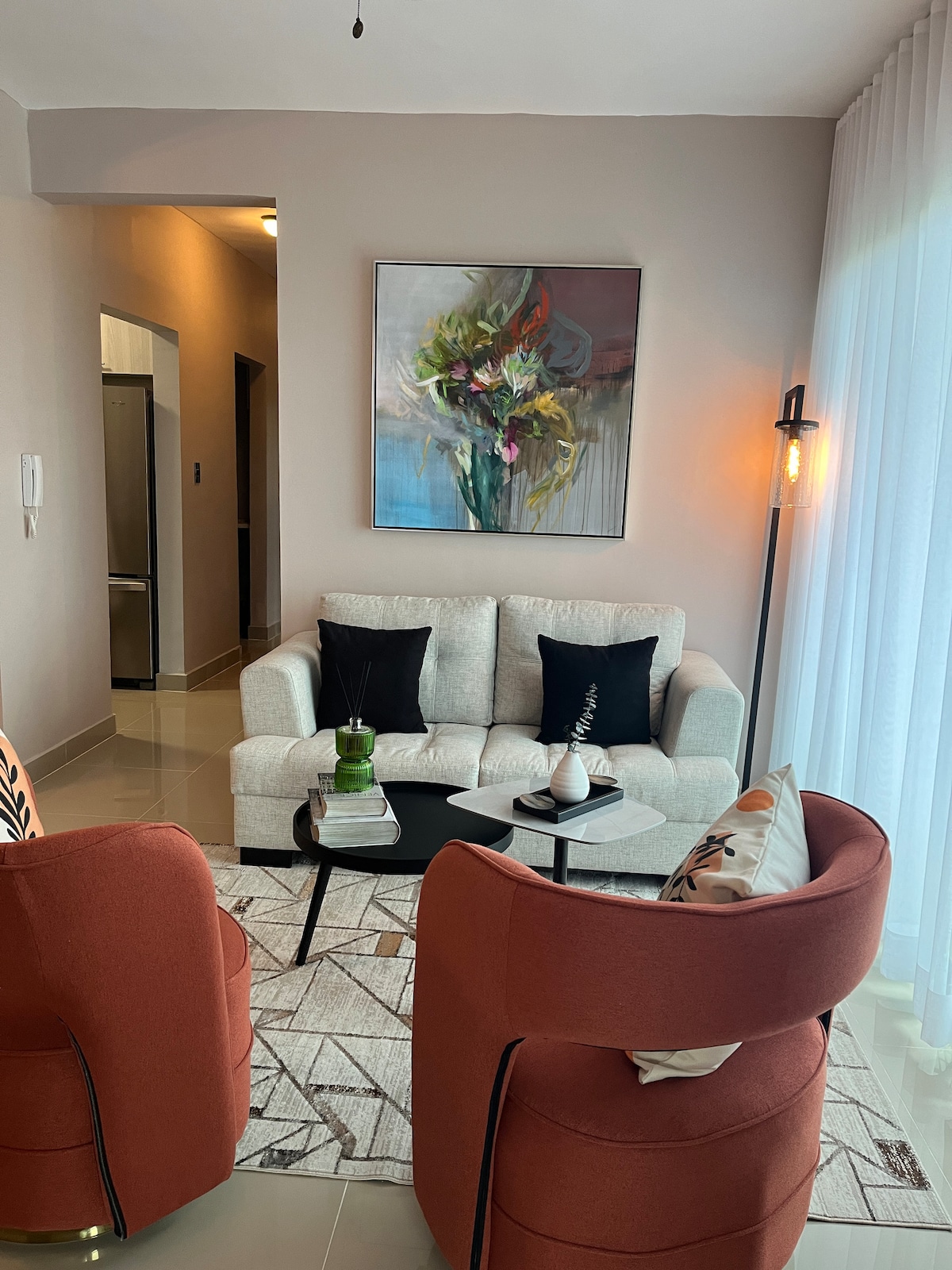 Witamy w tętniącym życiem sercu Santiago! 🏡🔑 To nowoczesne mieszkanie, profesjonalnie zarządzane przez Dolce Vita Property Management, jest idealne dla par, rodzin lub osób podróżujących służbowo. Zaledwie kilka minut od Monumentu, lotniska i najlepszych dzielnic Santiago. 🛏️ Miejsce dla 7–8 osób: Sypialnia główna: 1 duże łóżko (king) Druga sypialnia: 1 duże łóżko Trzecia sypialnia: 2 pojedyncze łóżka Salon: 1 łóżko pojedyncze + bardzo wygodna sofa