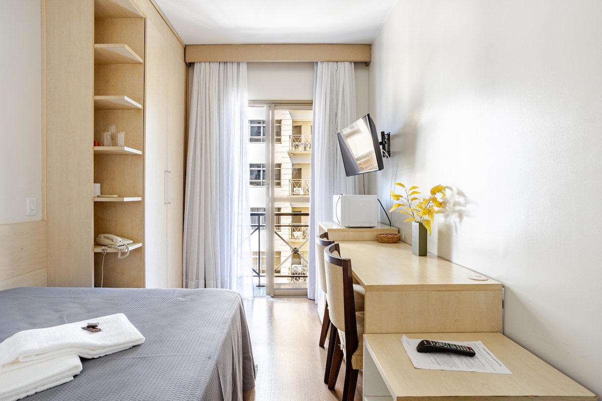 Studio zaprojektowane przez architektkę Ketlyn Melero, otwarty i nowoczesny plan na 28 piętrze słynnego budynku Copan z panoramicznym widokiem, zapewnia idealne warunki, aby Twój pobyt stał się niezapomniany. Copan to jeden z najważniejszych i najbardziej charakterystycznych budynków w mieście São Paulo. Jest symbolem współczesnej brazylijskiej architektury, zaprojektowanym przez architekta Oscara Niemeyera.