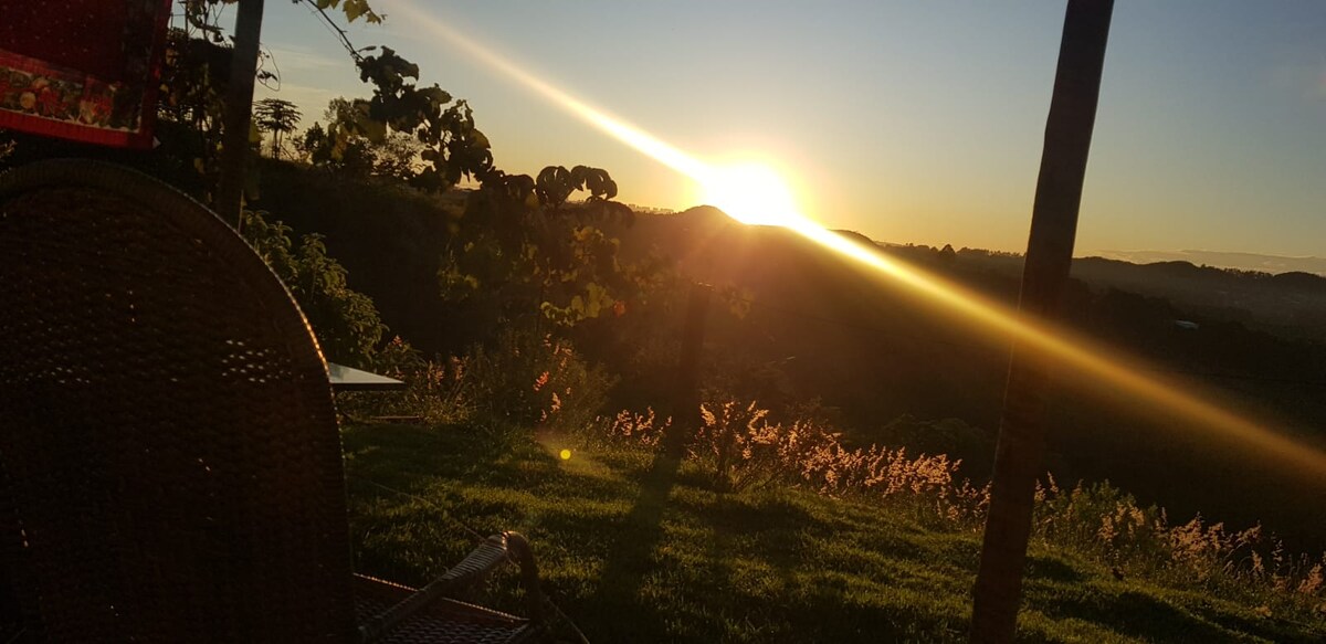 Casa aconchegante, cercada pela natureza, belas paisagens, pássaros e Piscina com aquecedor solar e linda vista! Relaxe em um lugar com ar de campo, passar bons momentos a dois, com a família e ou amigos... Toda a propriedade, incluído a piscina, será apenas para você e seus convidados! Nascer / por do sol e Lua cheia maravilhosos! Cozinha bem equipada Churrasqueira TV + Streaming Rede Gramadinho 1 Cama de casal, 3 de solteiro e Sofá Roupa de cama, cobertas. Piscina com aquecedor *solar