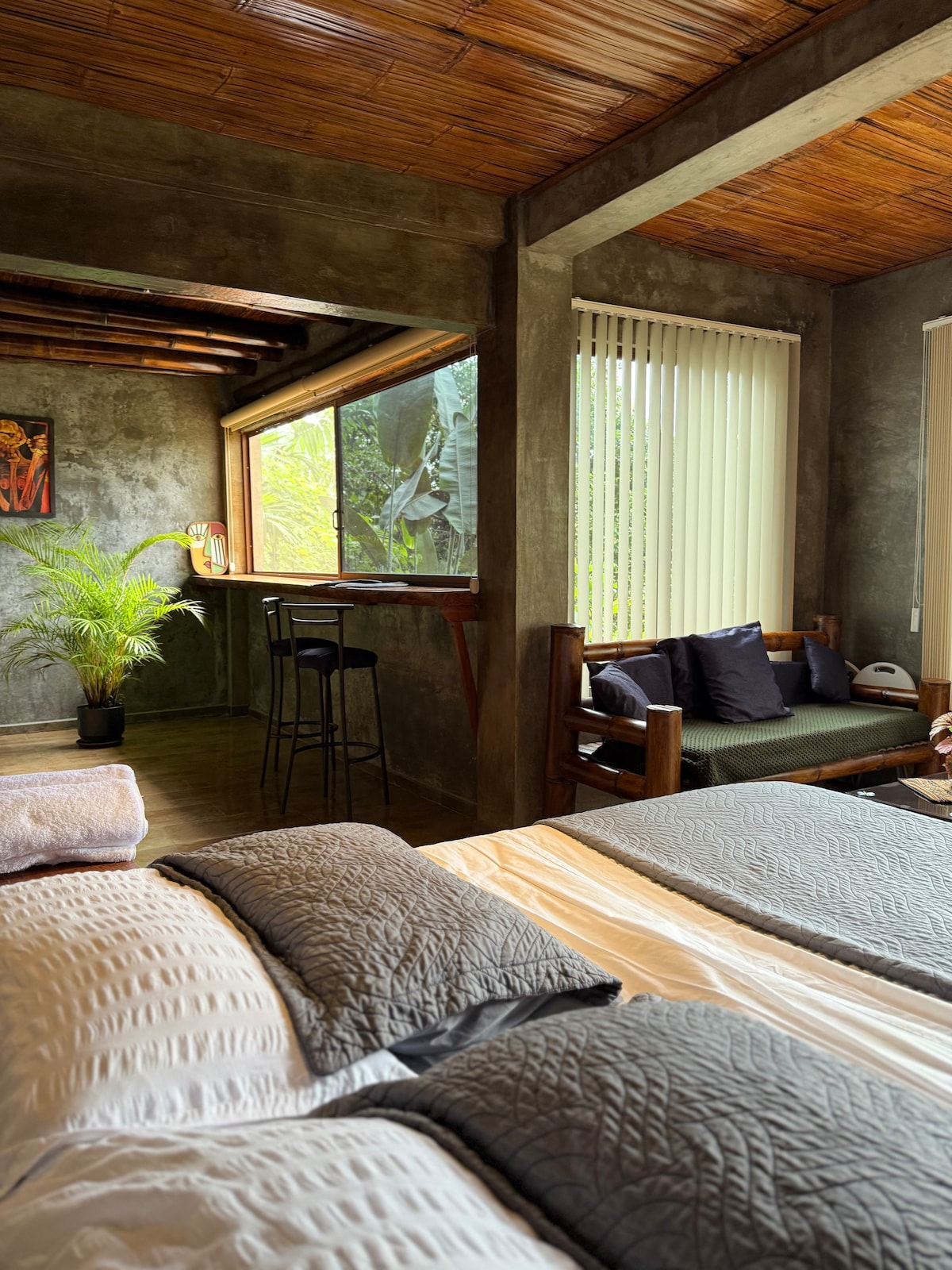 Nowoczesny i przytulny apartament ze wszystkimi udogodnieniami, idealny dla par lub małych rodzin, wyposażony w łóżko typu king size i rozkładaną sofę, telewizor Smart TV, w pełni wyposażoną kuchnię, nowoczesną łazienkę z gorącą wodą i suszarką do włosów, salon, balkon z meblami ogrodowymi, bezpłatne Wi-Fi, prywatny garaż. Uprzywilejowana lokalizacja zaledwie dwie przecznice od centralnego parku Mindo, spokojna okolica i blisko wszystkich atrakcji turystycznych, restauracji, apteki, supermarketu, bankomatu, autobusu itp.