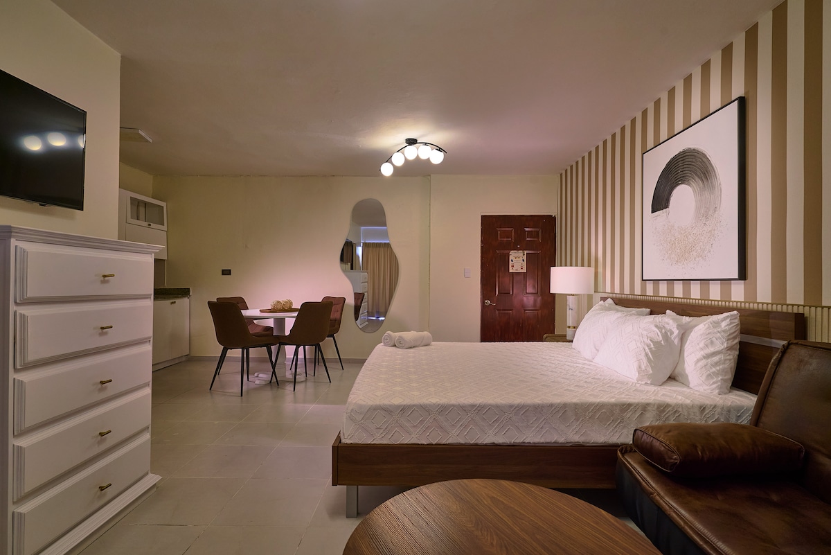 Enjoy the perfect blend of privacy and convenience in our stylish apartahotel. Designed for both short and long stays, this fully equipped apartment offers the comfort of home with the added benefits of hotel-style service. The space features a cozy living area, a comfortable bed, a private bathroom, and a fully equipped kitchen—ideal for relaxing, working, or extended stays. Conveniently located near key attractions, restaurants, and shopping areas, making it easy to explore the city.