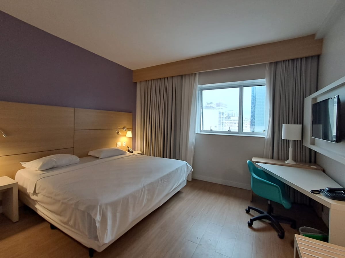 Ten apartament o powierzchni 55 m² jest idealny dla par i kadry kierowniczej w podróży służbowej. Ma wszystko, czego można oczekiwać od apartamentu: praktyczność i technologię. Osoby planujące spędzić Sylwestra w Santos mogą cieszyć się uroczystościami, nie opuszczając budynku.Z okolic basenu można podziwiać widok na morze, fajerwerki i świąteczną atmosferę miasta, bez konieczności zmagania się z ruchem ulicznym, tłumami czy męczącym dojazdem po pokazie fajerwerków.