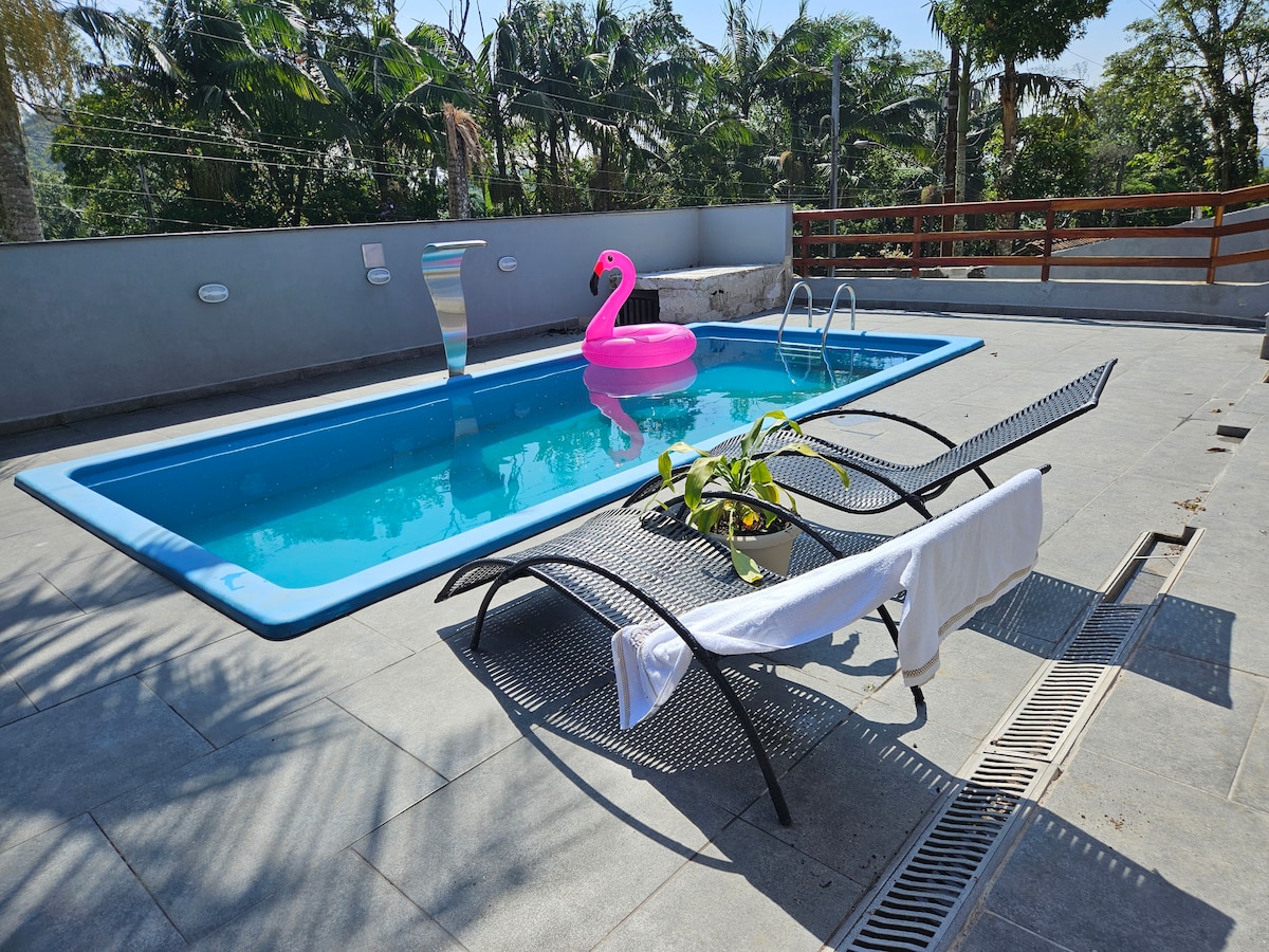 . Możemy przyjąć do 20 osób, jednak za każdą osobę powyżej 16 osób pobieramy opłatę w wysokości 60 reali za noc. Płatność należy uregulować osobno za pośrednictwem Pix. Możliwe jest dodanie Dzienny pakiet za 40 reali za osobę, wraz z zakwaterowaniem, nie może przekroczyć maksymalnej liczby 60 osób łącznie. Miejsce to wyróżnia się łatwą lokalizacją, otoczeniem przyrody, a także przyjemnym klimatem. Każdy szczegół został starannie dopracowany, aby każdy mógł cieszyć się każdą chwilą.