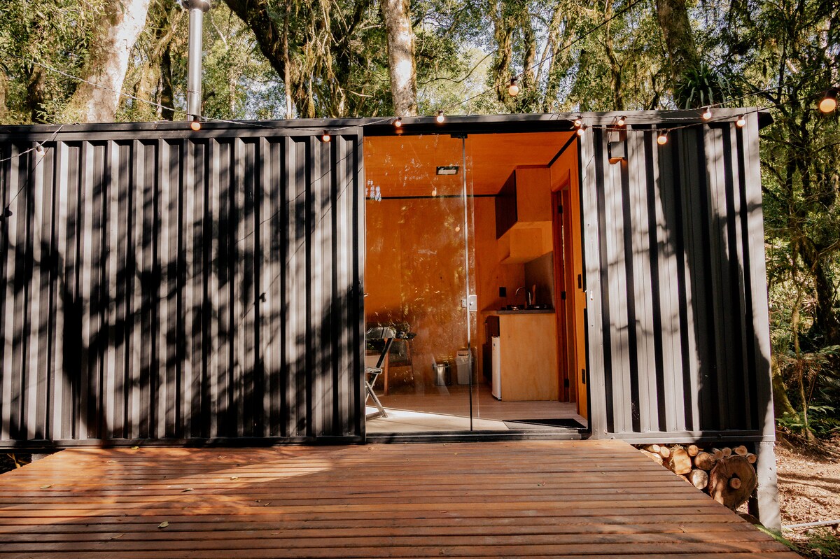 Poczuj bliskość natury w tym niezapomnianym miejscu Tutaj będziesz cieszyć się komfortem modułu zaprojektowanego i zbudowanego z myślą o wyjątkowym doświadczeniu, integracji z krajobrazem i dużym spokoju. Gwarantujemy komfort i dobrą atmosferę do wypoczynku Zaprojektowany dla pary, posiada łóżko typu queen, podgrzewaną wodę na gaz w łazience i kuchni, smartv 32', internet światłowodowy, pełną kuchnię, przestrzeń zewnętrzną z tarasem, grill, kominek, hamaki i krzesła bujane
