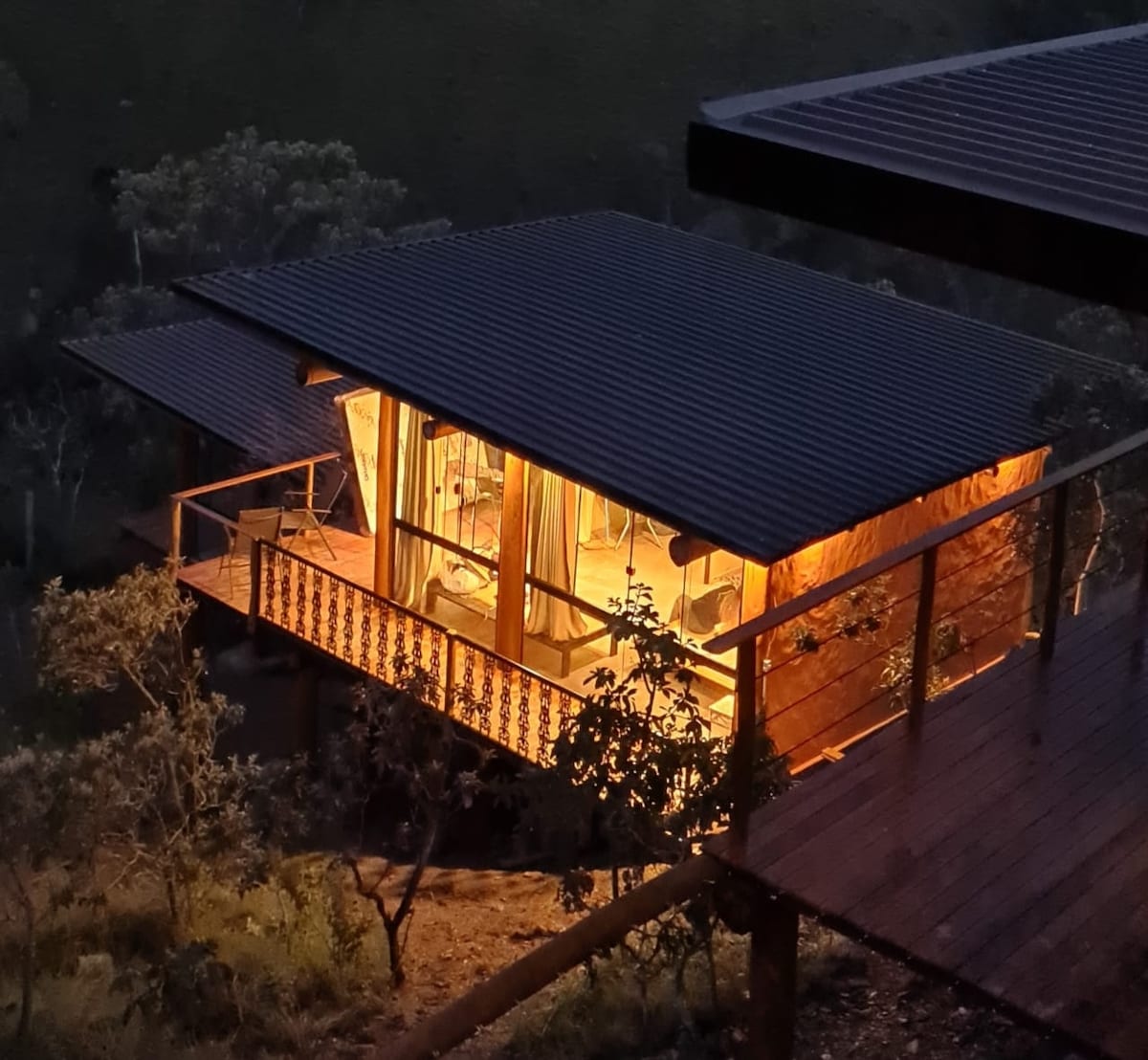 Inaê to połączenie komfortu i brazylijskiej duszy. 80 m² inspiracji łączy autorską architekturę z widokiem, który otwiera się jak żywy obraz. Pościel o wysokiej gęstości dla maksymalnego komfortu. W pełni wyposażona kuchnia i wanna z hydromasażem, ale prawdziwą atrakcją jest nasz naturalny basen z ozonowaną wodą, piękny taras, sauna i małe bezpłatne śniadanie przygotowane przez naszego szefa kuchni. Idealne dla osób, które chcą zanurzyć się w rodzimym cerrado, nie rezygnując z komfortu.