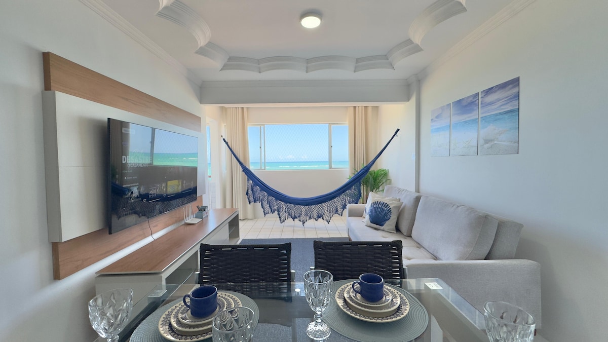🐚 Przytulne i kompletne, nad morzem, z widokiem na morze ze wszystkich pokoi. Miejsce dla 6 osób, klimatyzowana sypialnia i salon. Wyposażona kuchnia, szybkie Wi-Fi, Smart TV i balkon z hamakiem. 🌊 Budynek posiada basen, windę, garaż i całodobową recepcję. Strategiczna 📍 lokalizacja, 20 minut od niepowtarzalnych plaż Antunes i Caminho de Moisés, w Maragogi. Blisko świetnych restauracji i supermarketów, pozwala poznać całe wybrzeże Alagoas i Pernambuco.