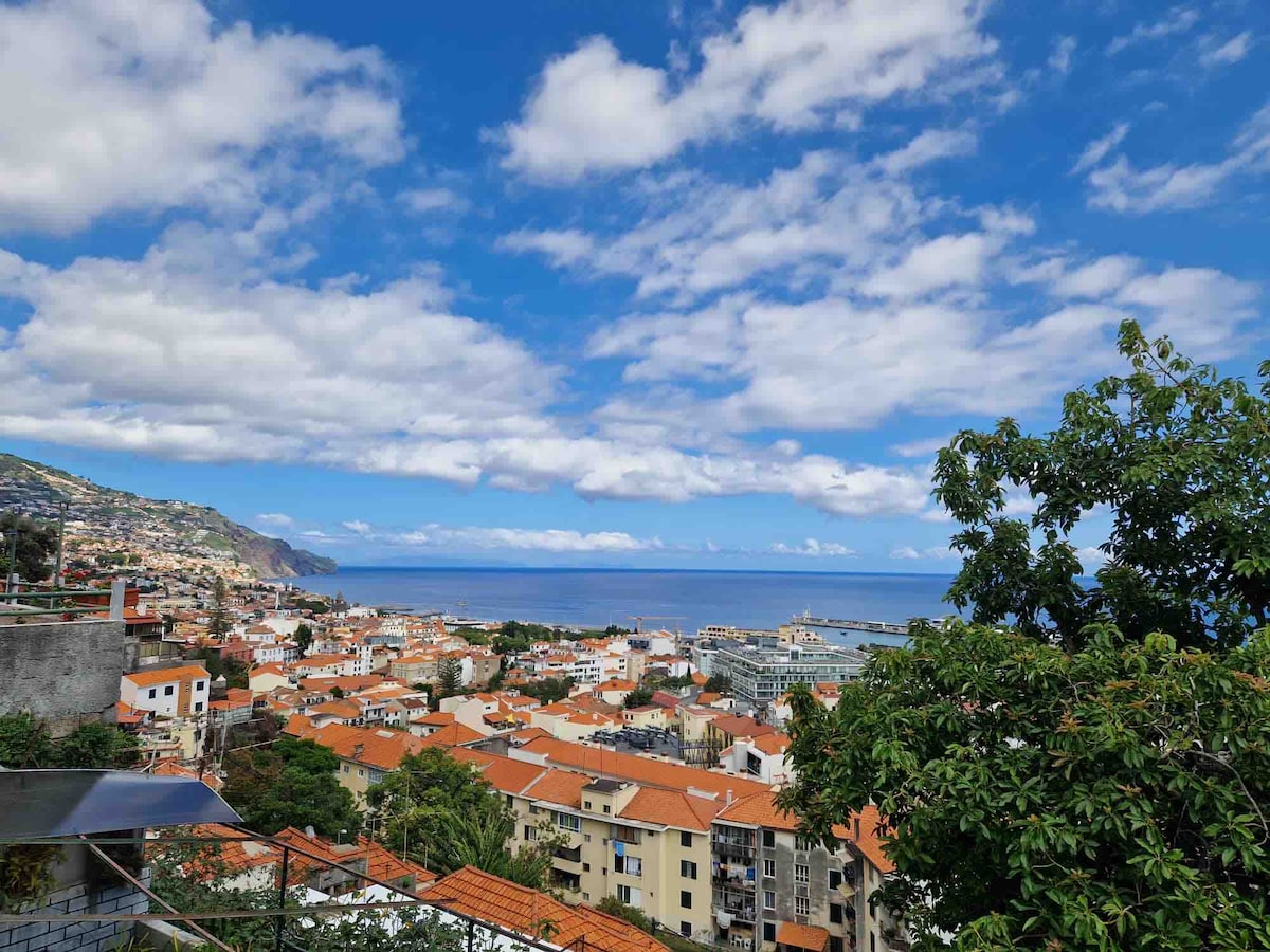 Perfect Holiday house at walking distance from Funchal city centre with an amazing view over funchal bay. transfer from the airport directly to the property can be provided at a certain fee, to be discussed, and should you wish to book the famous levada walks, tours around the island, provide help. Please read details, about the new tourist taxation system.