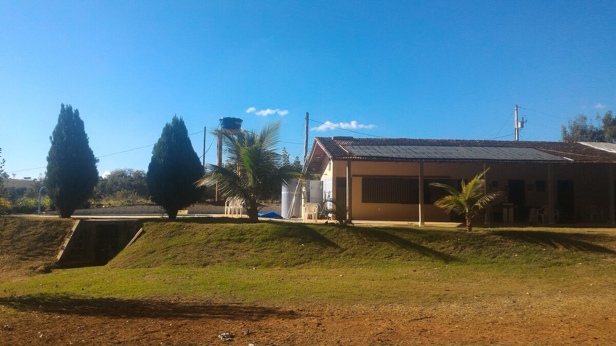 Ciesz się wyjątkowymi chwilami z rodziną i zrelaksuj się w tym spokojnym miejscu w Serra da Canastra, w bezpośrednim kontakcie z naturą. Ten przestronny i komfortowy dom z basenem ogrzewanym energią słoneczną, dmuchaną matą, trawnikiem i miejscem na ognisko zapewnia odpowiednią wentylację. Posiada wyposażoną kuchnię z niezbędnymi przyborami do przygotowania śniadania, obiadu i kolacji. Darmowe Wi-Fi, grill na świeżym powietrzu.
