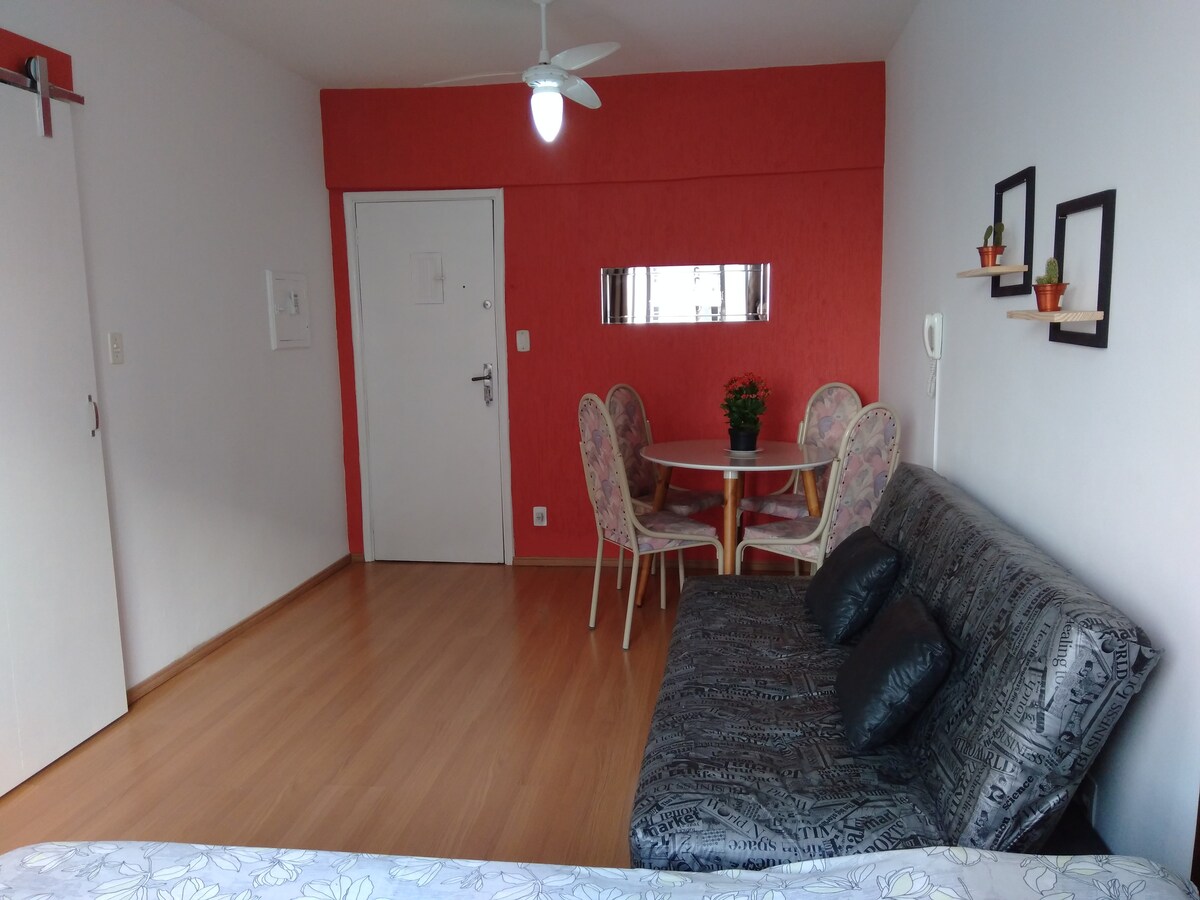 Mała pracownia przy plaży, bardzo fajna i z podstawowymi przyborami kuchennymi do małych posiłków. Różne godziny zameldowania i wymeldowania. Świetna lokalizacja, wystarczy przejść przez ulicę, aby postawić stopę na piasku, obok pasa paralotniowego i kolejki linowej, łatwy dostęp do stacji VLT Itararé, z piekarnią i restauracjami zaledwie kilka metrów dalej. W odległości 1 km znajduje się hipermarket, główne rodzaje handlu i fast food. Szybki internet Wi-Fi. Zobacz zdjęcia ogłoszenia, aby uzyskać więcej opisów!