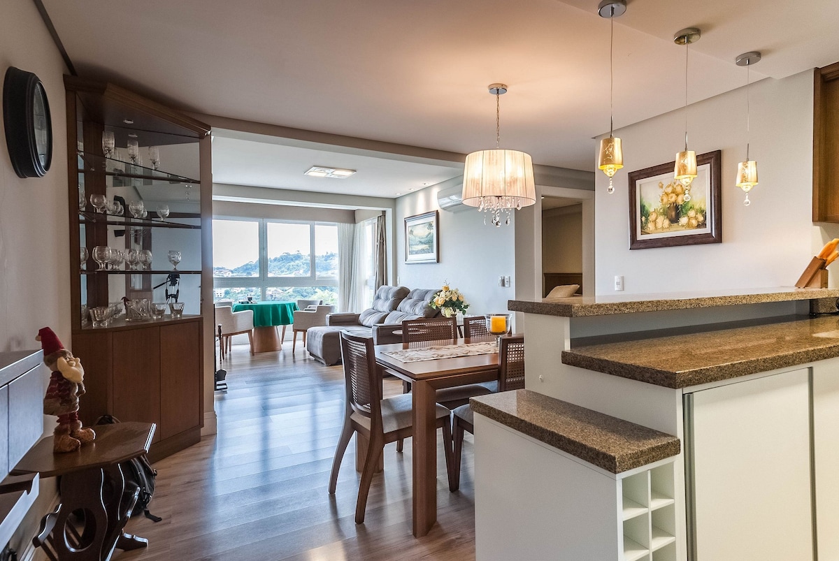 Ten niesamowity luksusowy apartament został całkowicie przeprojektowany! Oferuje 180m2 i elegancję w każdym szczególe, duże okna z ekskluzywnym panoramicznym widokiem na dolinę Quilombo, 70"Smart TV w salonie i 43" w dwóch sypialniach! Dodatkowo znajduje się tylko 2 przecznice od Coberta Street! Ponieważ znajduje się w centrum, będziesz w stanie zrobić wiele rzeczy na piechotę, mając wygodę opuszczania samochodu i kontemplując w ciszy i spokoju wszystko, co Gramado ma do zaoferowania!