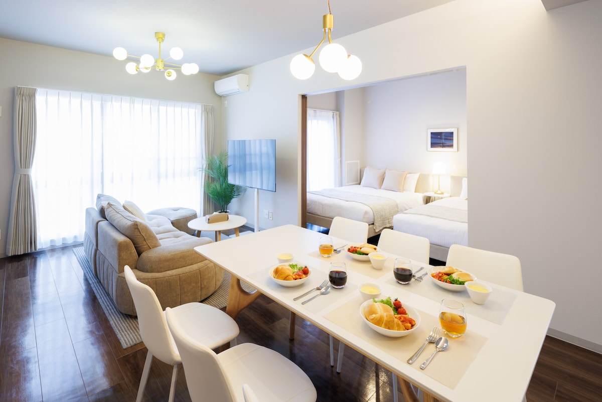 【大通・すすきの徒歩圏|ホテルライクに暮らす札幌ステイ】 札幌の旅を、もっと快適に、もっとスタイリッシュに。 北海道札幌市中央区に位置する本物件は、最大4名まで宿泊可能な1DKのホテルライクな空間です。白とグレーを基調とした明るく洗練された室内は、まるでホテルのような上質さと自宅のような居心地の良さを兼ね備え、カップルやご家族、友人同士での滞在に最適です。 お部屋について ・広さ:約33㎡の1DK ・定員:最大4名様(ダブルベッド2台) 🍳 充実の設備 ・バス・トイレ別で快適な水回り ・自炊ができるキッチン(冷蔵庫・電子レンジ・調理器具付き) ・洗濯乾燥機・Wi-Fi・大型テレビ・ドライヤー・ヘアアイロン完備 ・長期滞在にも便利なエアコン・暖房・掃除機・ハンガーラック付き アクセス 地下鉄「中央区役所前」駅から徒歩約9分、人気のすすきの・大通エリアへも徒歩圏内。観光やグルメ、出張の拠点としても理想的なロケーションです。 すすきの徒歩圏内で札幌のナイトライフも満喫出来ます。 落ち着いた雰囲気の空間で、札幌での滞在をゆったりとお楽しみください。
