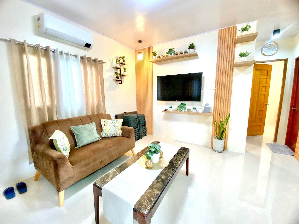 Apartament rodzinny Bloomstone 2BR – Vivienne Heights, Gensan. Przytulny dom z bramą dla maksymalnie 8 osób z dwiema sypialniami z klimatyzacją, jasnym salonem ze Smart TV, szybkim Wi-Fi i pełną kuchnią. Świeża pościel, zestawy dla gości i bezpłatna woda pitna wliczone w cenę. Ogrodzony trawnik z parkingiem i całodobową kamerą CCTV. Sklep Honesty na miejscu. 3–5 minut do pola golfowego, apteki i restauracji; 5–10 minut do SaveMore i szpitali; 15–20 minut do SM, KCC, Robinsons i lotniska. Idealne dla rodzin i na spokojny pobyt.