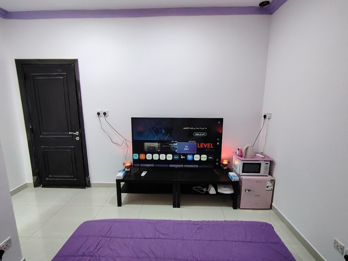 Zrelaksuj się w tym cichym i eleganckim mieszkaniu Studio w pobliżu wszystkich usług, a z ogrodu jest męska i żeńska siłownia, salon i plac zabaw dla dzieci. W pobliżu Sheikh Abdulaziz Bin Baz Street i Hira Street Port lotniczy Króla Abd al-Aziza 14 minut Mandarin Avenue 7 minut Jasmine Mall 13 min