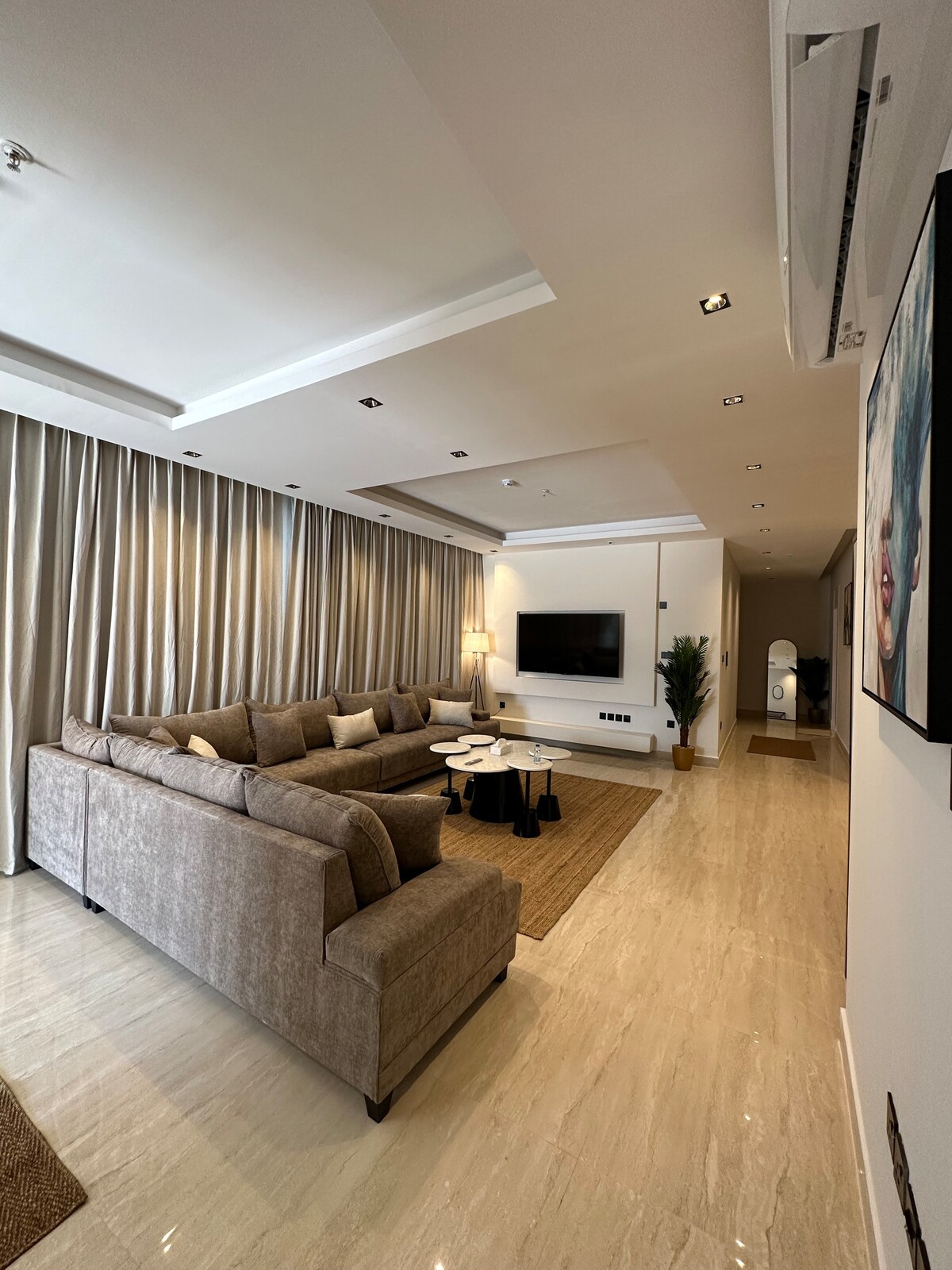 Elegancki apartament – Al-Khazama, Al-Khobar ✨ 🛏 3 sypialnie z pościelą hotelowej jakości 🛋 Przestronny salon + Smart TV (Shahid VIP i Netflix) 🍳 W pełni wyposażona kuchnia ❄️ Klimatyzacja centralna i dzielona 🌐 Szybkie Wi-Fi 🔑 Inteligentne wejście | 🚗 Parking 📍 Doskonała lokalizacja w pobliżu Bahrain Causeway, Corniche i centrów handlowych ✨ Idealne dla rodzin i osób szukających komfortu