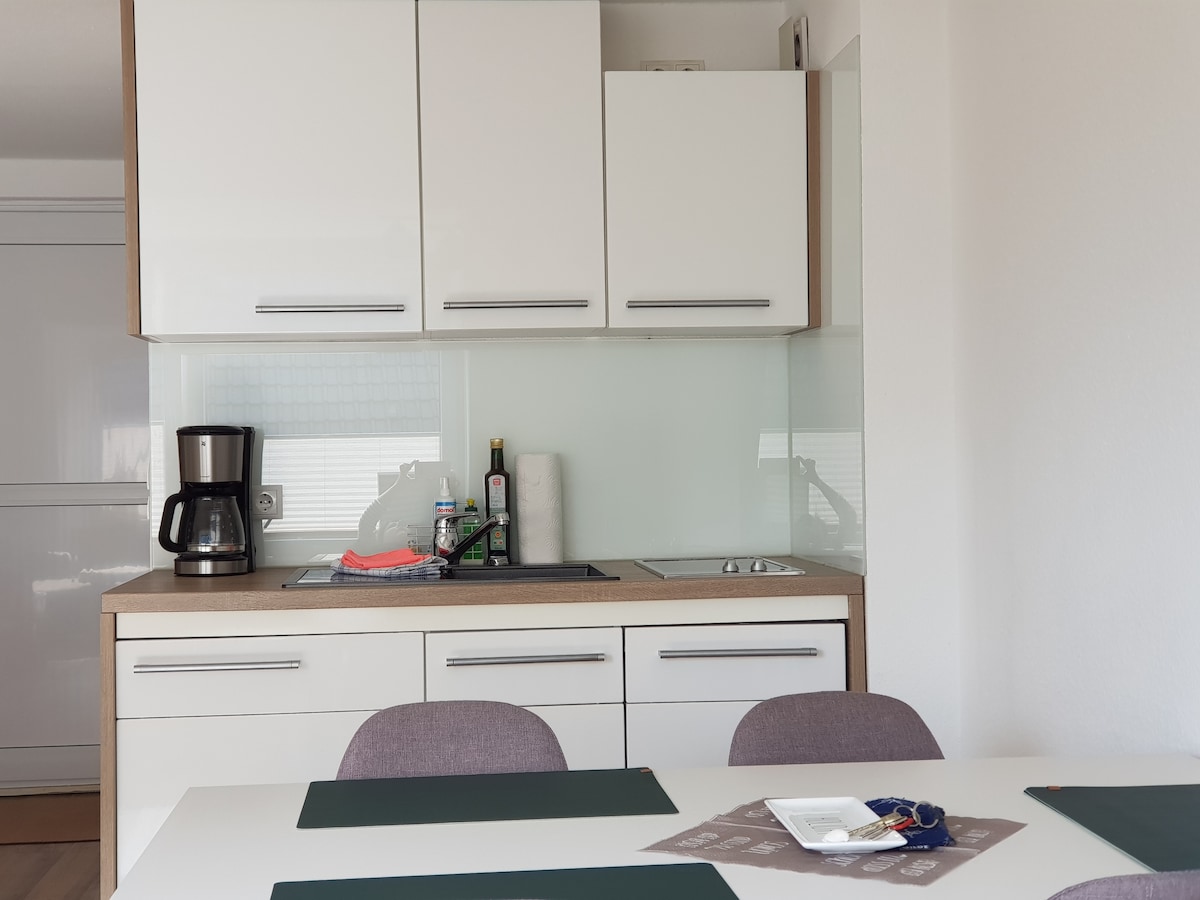 Apartament znajduje się w apartamentowcu. Dom stoi bezpośrednio przy Kammer Wald i jest oddalony o 5 minut od plaży. Jasny i komfortowy apartament znajduje się w spokojnej okolicy. Mieszkanie znajduje się na pierwszym piętrze. Powierzchnia mieszkalna składa się z pięknie urządzonego salonu z otwartą kuchnią i jadalnią. Sypialnia jest wyposażona w łóżko małżeńskie i dużą szafę. Łazienka jest wyposażona w prysznic i toaletę.