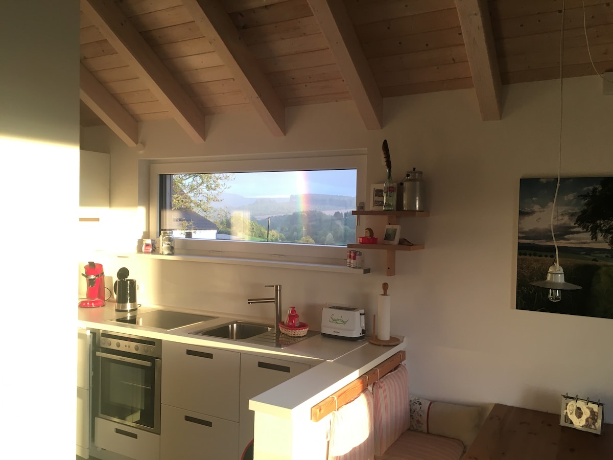 Masz ochotę na wakacje lub workation? Zapraszamy: apartament w idyllicznej okolicy z fantastycznym widokiem na zieloną okolicę i dużą ilością miejsca na relaks między spotkaniami lub na cieszenie się wakacjami. Tylko 12 minut od Greenhill Bikepark 🚵♂️