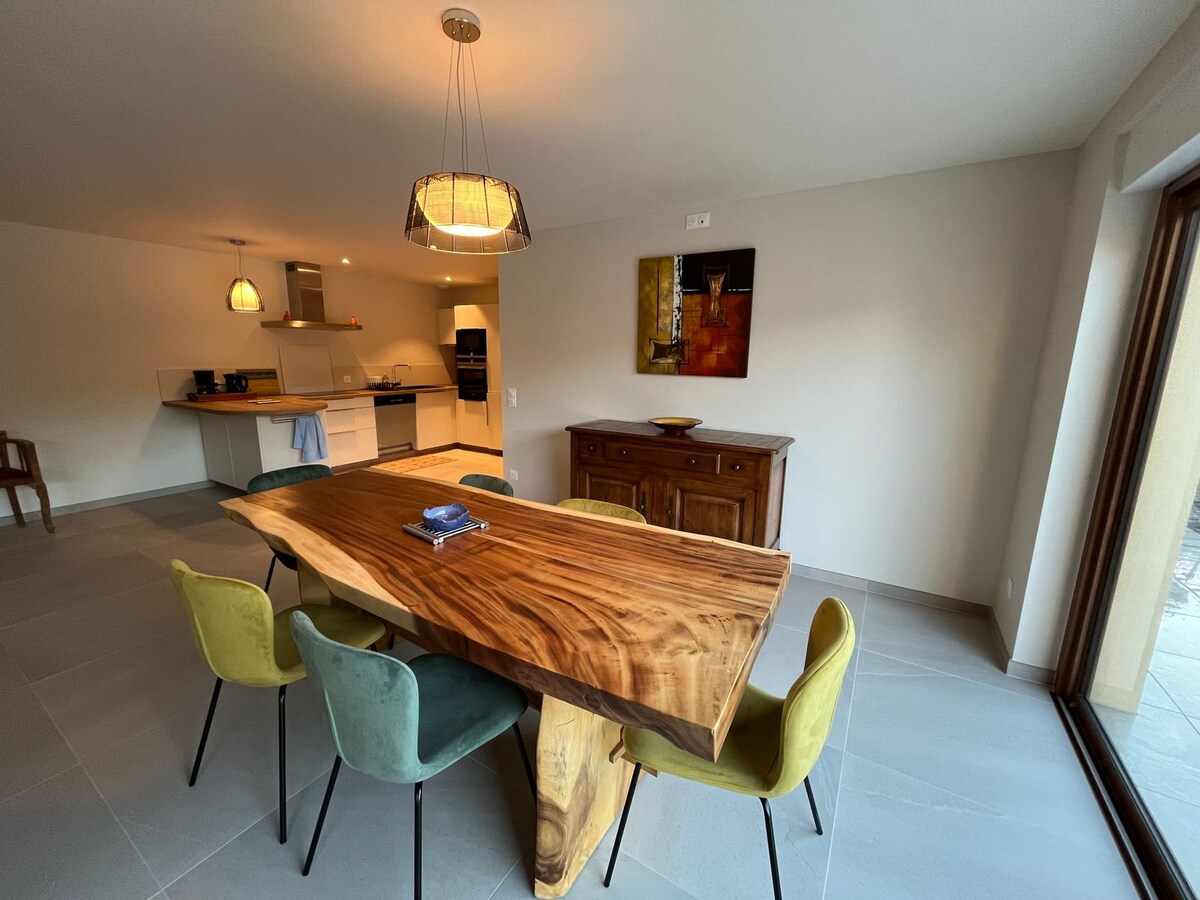 đ„ Grand appart standing 155 mÂČ â Route des Vins & Vosges Spacieux appartement de standing de 155 mÂČ avec 3 chambres, situĂ© au centre de Mutzig, au calme prĂšs des vignobles, Ă seulement 20 minutes de Strasbourg centre đđ. Entre Strasbourg et Colmar, sur la Route des Vins et au pied des Vosges đ. IdĂ©al pour familles, couples ou amis pour dĂ©couvrir lâAlsace đ°đ·. Piscine chauffĂ©e toute lâannĂ©e Ă 30° đââïžđ„, confort premium, sĂ©jour dĂ©tente et emplacement parfait âšđĄ
