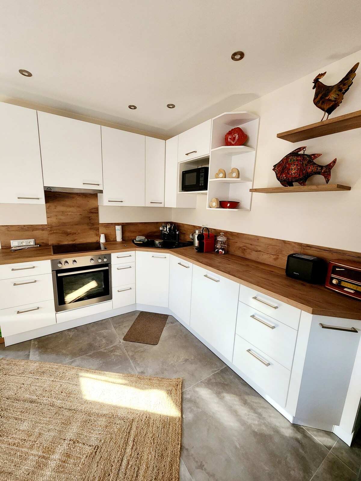 Wyposażenie: - Zakaz palenia..absolutny zakaz palenia.. zakaz zwierząt -60 m2 na 2 piętrach – Kuchnia z kuchenką mikrofalową, płytą grzewczą/piekarnikiem, lodówką/zamrażarką, zmywarką, ekspresem do kawy, czajnikiem elektrycznym - Łazienka z pralką - Łóżko podwójne 1,80 m x 2,00 m (dodatkowo składana sofa dla maks. 2 osób) - Nowo odnowiony w 2017 roku - Miejsca do siedzenia na dziedzińcu