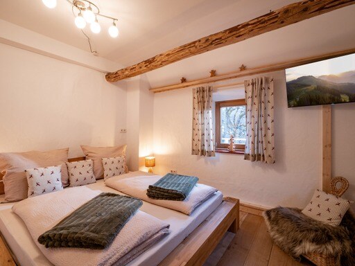 The 'Zirben Nest' in A nett's Nest offers 25 sqm for up to 2 guests. You have a bedroom with pine paneling and furniture, a private shower room, and a separate toilet for your exclusive use on the same floor. Enjoy beautiful mountain views and a stunning panorama of the valley and Zell am Ziller. The room has Wi-Fi, a comfortable box-spring bed, and a table with two cozy armchairs.