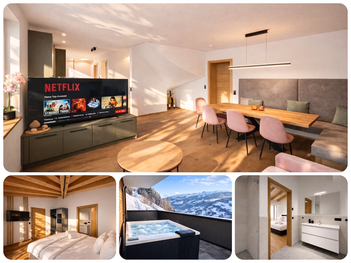 The 7 Reasons Panorama View! Our 4-star premium flats in the heart of the Zillertal invite you to a very special stay, to a holiday full of views and impressions, action and relaxation, rustic hospitality and modern ambience. And all this with likely the most fantastic mountain panorama in Austria before your eyes. Modern meets rustic, local traditions with maximum comfort.