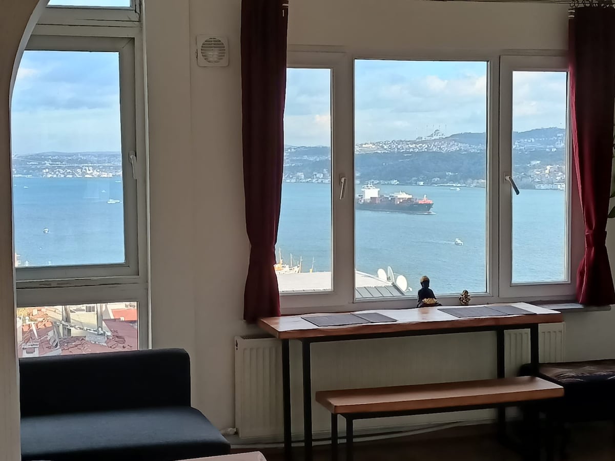 You can experiance the unique Bosphorus view of Istanbul from your living room. -Features of the flat- -On foot; 10min. to Taksim square, 10min. Karakoy and Galata Port, 5 min. to the most fun streets of Cihangir. Your kitchen and bathroom needs (including kitchen utensils, clean linens and towels) will be provided by us. Our flat is on the second floor and there is no elevator. There is no direct car access to apartment. You have to use the stairs to reach the apartment's street.