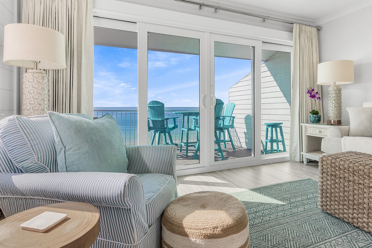 Serenity at Seamist 9 ma prywatny dostęp do plaży i jest jednym z 12 obiektów będących własnością prywatną w spokojnej okolicy na 30-A. Przeżyj spokojne wakacje na plaży w tym wykwintnym apartamencie z widokiem na Zatokę Meksykańską. Powita Cię zapierający dech w piersiach widok, który pasuje do pięknych turkusowych akcentów w domu. Wyjdź na prywatny balkon, aby przyjrzeć się bliżej genialnym, niebiesko-zielonym wodom Zatoki. Weź swój ulubiony napój i rozgość się na wysokich krzesłach obrotowych. Idealne miejsce na oglądanie delfinów