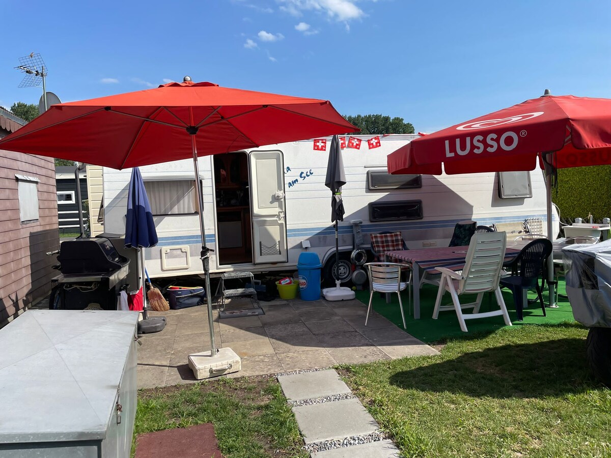 Caravane au camping du Landeron vie simple au lac