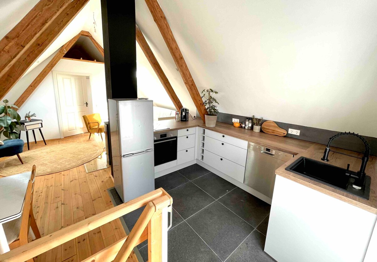 Dachwohnung mit 45 m², 20 Autominuten zur Messe.