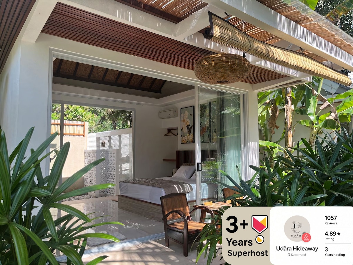 Piękny i rustykalny prywatny domek z widokiem na ogród. 100 m do wspaniałej plaży, gdzie można nurkować z żółwiami. Codziennie na plaży serwowane jest pyszne śniadanie, w tym świeża sałatka owocowa – w cenie pobytu. Krótki spacer do różnych atrakcji, w tym nurkowania i sportów wodnych. Łatwo wypożyczysz rower, aby zwiedzić wyspę. Fantastyczna lokalizacja na wschód słońca. 5 identycznych pokoi, zapytaj, czy oferta jest pełna. Mogą być dostępne inne.