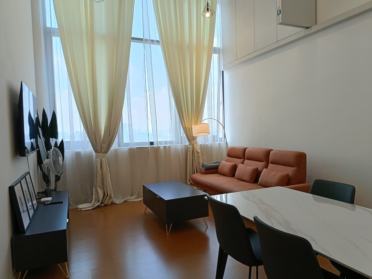 Zamieszkaj w tym przytulnym, samodzielnym studio w samym sercu Damansara Perdana – w pobliżu The Curve, IKEA, kawiarni i sklepów. Ciesz się całkowitą prywatnością z pięknym widokiem na basen, wygodnym łóżkiem typu queen, relaksującymi pufami i szybkim internetem światłowodowym 200 Mb/s. Bezpłatny parking dla Twojej wygody. Idealne dla par lub podróżujących w pojedynkę, którzy szukają spokoju i komfortu. Dobrze skomunikowany z Kuala Lumpur i atrakcjami miasta koleją i autostradą, w pobliżu najlepszych centrów handlowych – czeka na Ciebie idealny mały wypoczynek nad basenem!