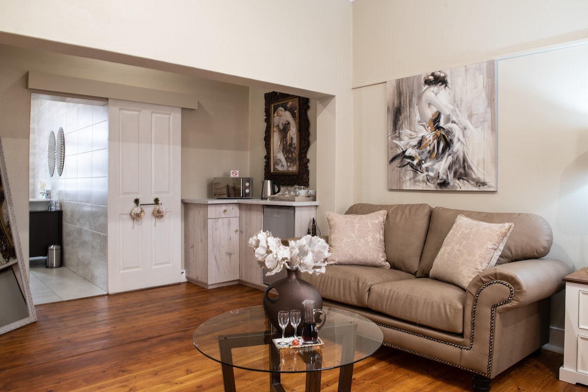 Ten elegancki apartament ma przestronny salon z sypialnią i dużym łóżkiem; zachwycającą kuchnię w stylu agroturystycznym, łazienkę z wanną i prysznicem oraz prywatny taras z udogodnieniami braai i widokiem na góry. Opcjonalnie: podwójne łóżka i miejsce dla dodatkowych dzieci